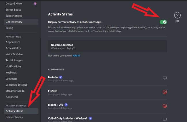 Make sure you have the Discord activity settings ON: